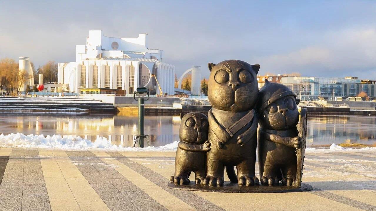 На набережной Александра Невского в Великом Новгороде появилась скульптурная композиция из трёх котов, созданная по мотивам картин художника Васи Ложкина.